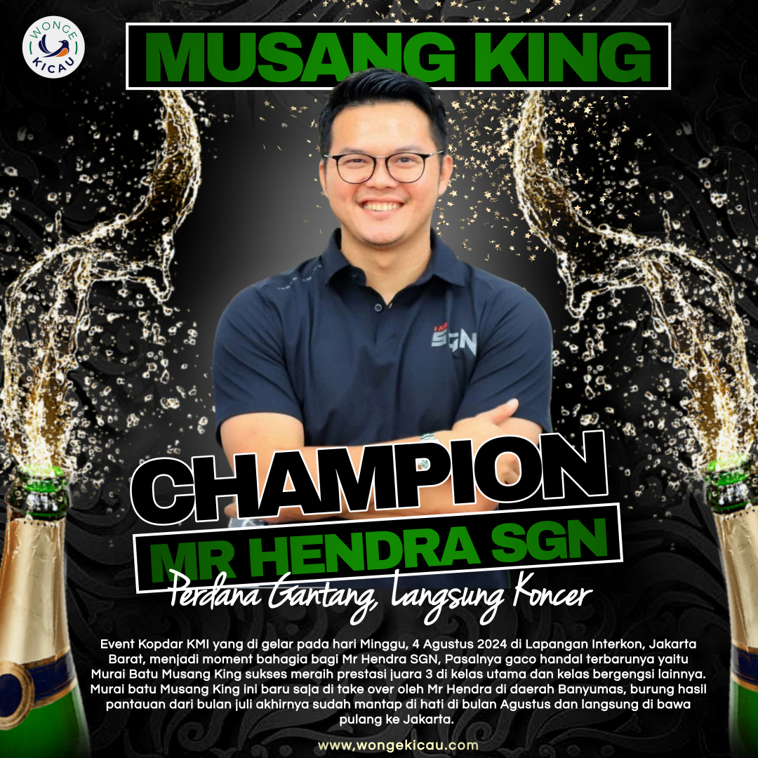 Turun perdana di event bergengsi Kopdar KMI kemarin cukup membuat Mr Hendra Bahagia, penampilan murai batu Musang King membuat bangga team SGN, tampil nyaris sempurna sesuai yang di harapkan di 2 sesi, terutama di kelas utama murai batu hadiah 10 juta, namun Musang King hanya mendapatkan juara 3 dikelas itu.